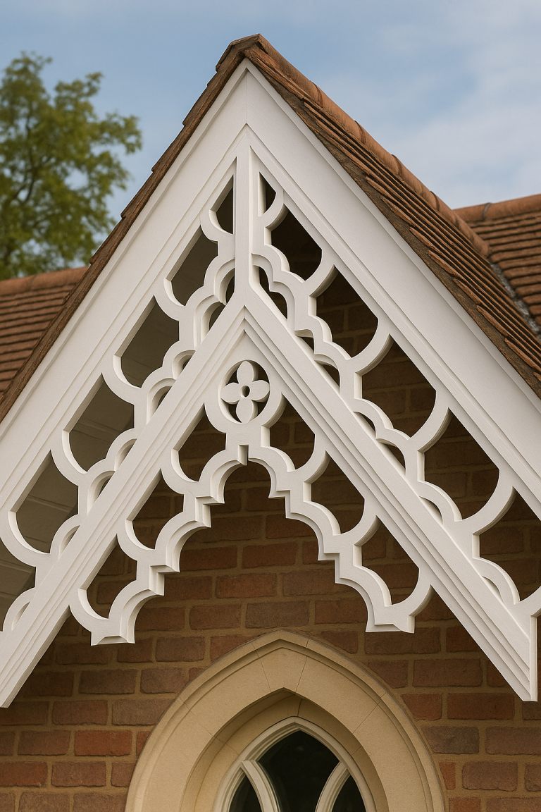 Discover our bespoke wooden decorative barge and fascia boards, tailored to enhance your property's character and charm.